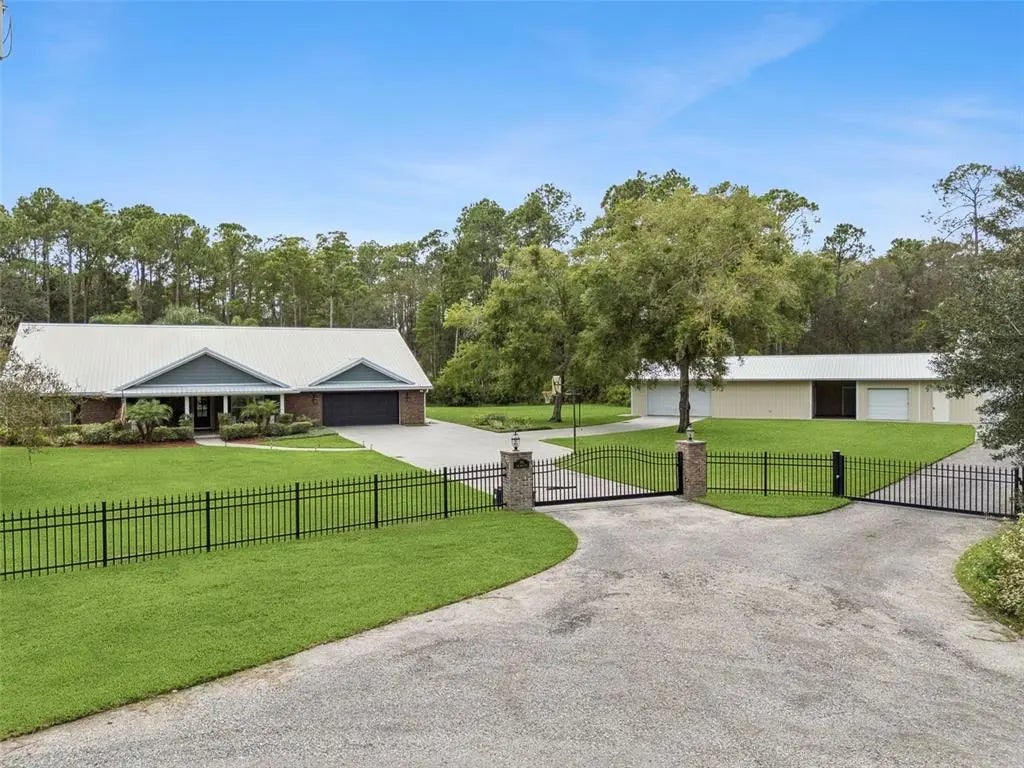 Under contract-accepting backup offers. Welcome to this beautifully updated estate on 2.5 serene acres in the heart of Lake Helen. Built in 2000 and thoughtfully renovated, this 2,845 sq. ft. home blends modern updates with country charm. Offering 4 bedrooms, 2.5 baths, and a private office, it’s designed to suit both everyday living and entertaining. An oversized 2-car garage provides ample space for vehicles, storage, or hobbies. Inside, you’ll love the brand-new flooring and kitchen, along with peace of mind from recent upgrades including a new A/C and water heater (2024) and a new roof (2017). City water service adds convenience, while an automatic generator powered by a 500-gallon propane tank ensures comfort in any season. Step outside and enjoy your own resort-style retreat. The screened patio, overlooking the pool (resurfaced in 2019) is the centerpiece, complemented by an outdoor kitchen and cozy fireplace, perfect for gatherings with family and friends. A major highlight of this property is the 2,700 sq. ft. detached building, offering endless opportunities for Boat/RV storage, workshops, or business use. It also includes a 500 sq. ft. apartment, ideal for in-laws, guests, or potential rental income. For those desiring even more room to expand, an adjacent 2-acre parcel is available with the purchase. Conveniently located near I-4 with easy access to Orlando, Daytona, and surrounding areas, this estate offers the best of both worlds—privacy and space, with city conveniences just minutes away. Don’t miss your chance, please call to schedule a private showing!